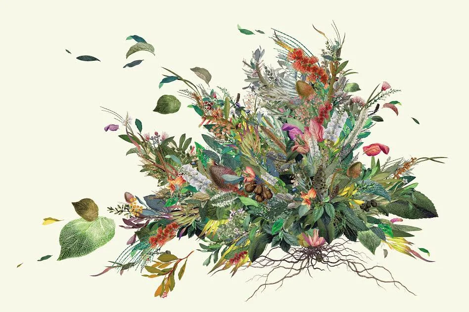 Briccetti scoured the Banks collection to painstakingly select every one of the flowers, leaves, and sprigs that found a home in her expansive, ink on canvas, homage to UCSB’s alien plant life. The full piece seems to bloom out of its stark white background, reaching its roots and leaves out toward viewers in seeming chaos while somehow retaining the minimalistic, scientific form of Banks’ originals.