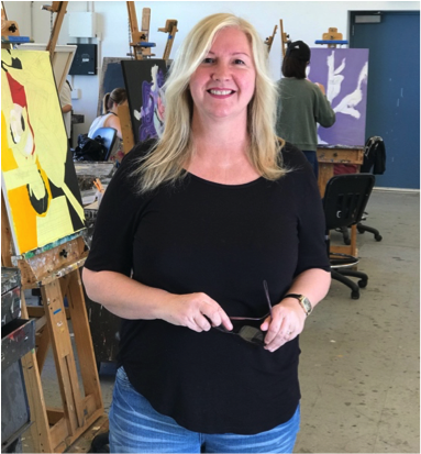 Art Professor Jane Callister poses with her painting students. [/caption]
