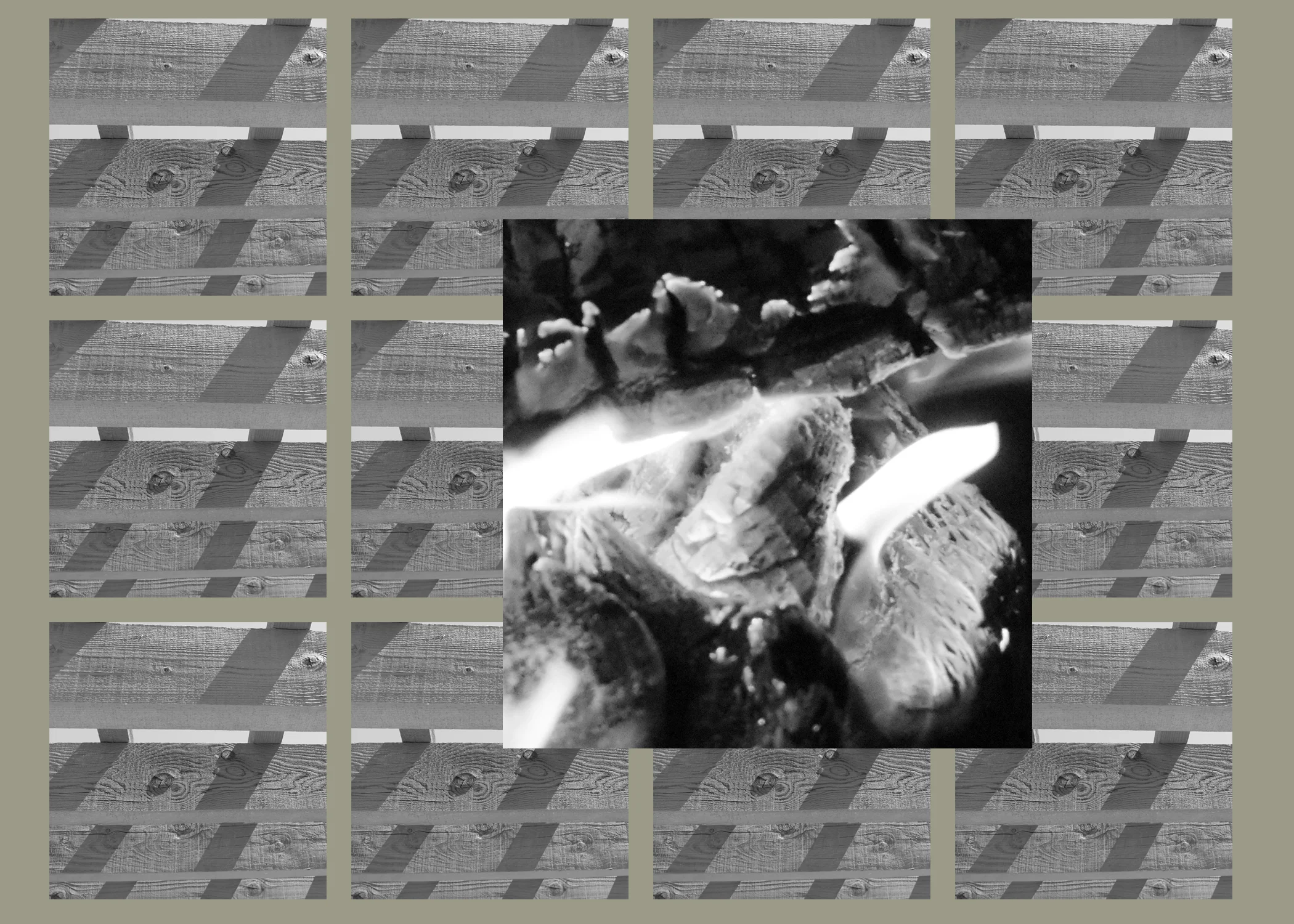 The title of this work is self-explanatory. The background images are of my grandparents' house where I spent much of my early life. The burning wood in the foreground represents a night at the beginning of my Junior year when my housemates and I were breaking in a fire pit we had purchased. It is a fond memory I have of that year.”