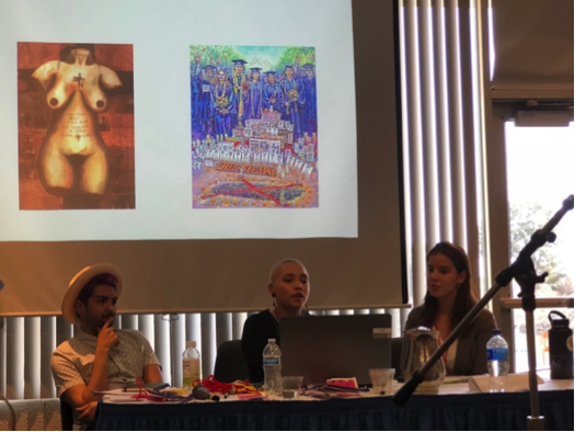 UCSB graduate students Ana Caroline Moreno and Allen Magaña were highlighted during the final discussion session, along with Cal State Los Angeles graduate student Raquel Rojas. Their panel’s theme was femicide and violence against those in LGBTQ communities.