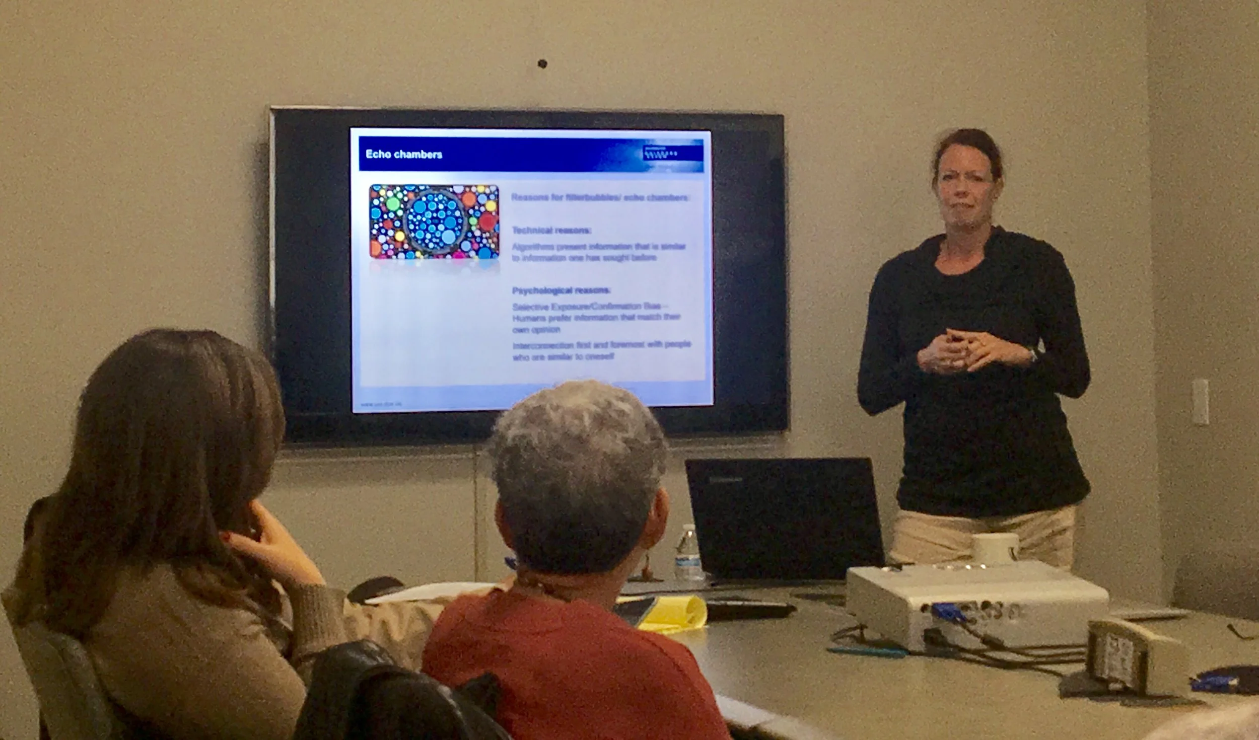 Krämer explained that these echo chambers come partly from algorithms in websites that sense what people want to see based on their searches, resulting in “filter bubbles” of one-sided content.