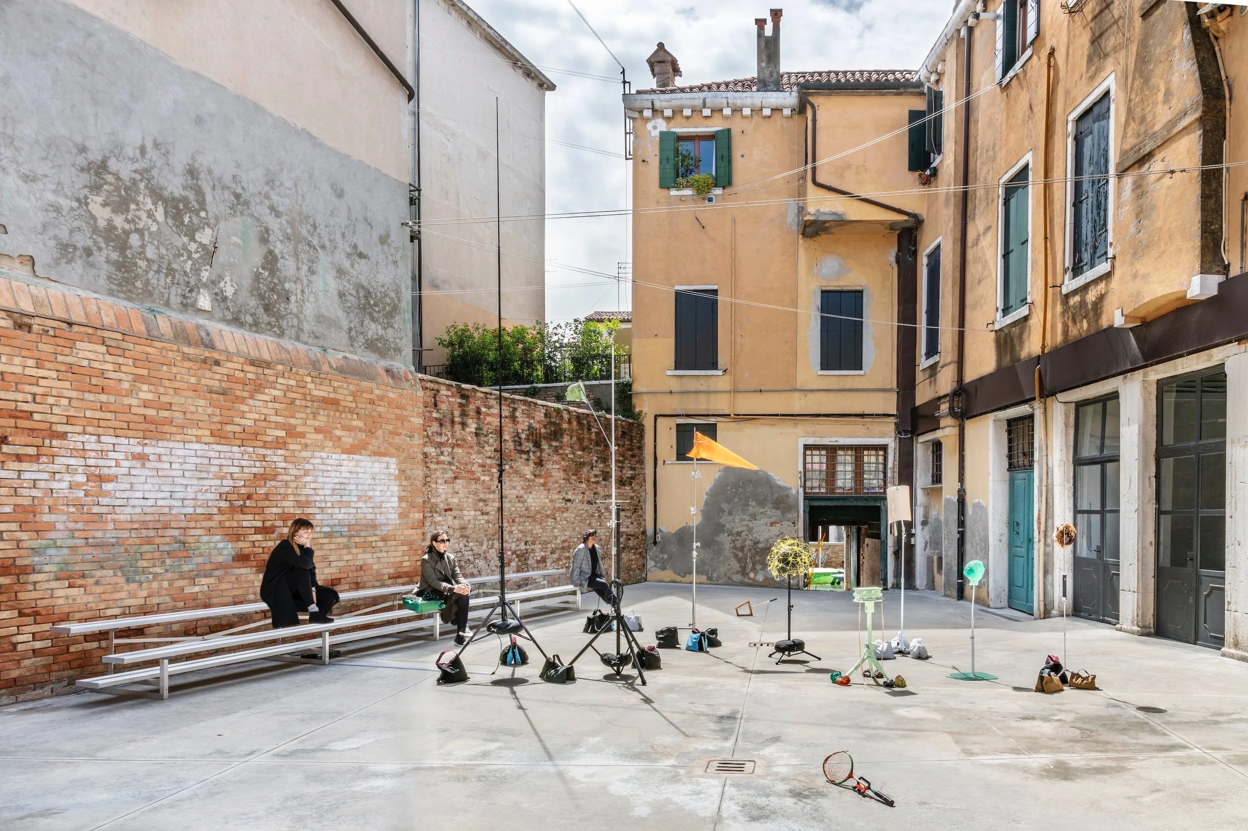 “Playcourt,” Tse’s other Venice installation, is about reclaiming public space. “Playcourt” is an outside badminton court based on one from her childhood in Hong Kong. Tse used her sculptures instead of a net, to conjure how children use any material they can to create that line.