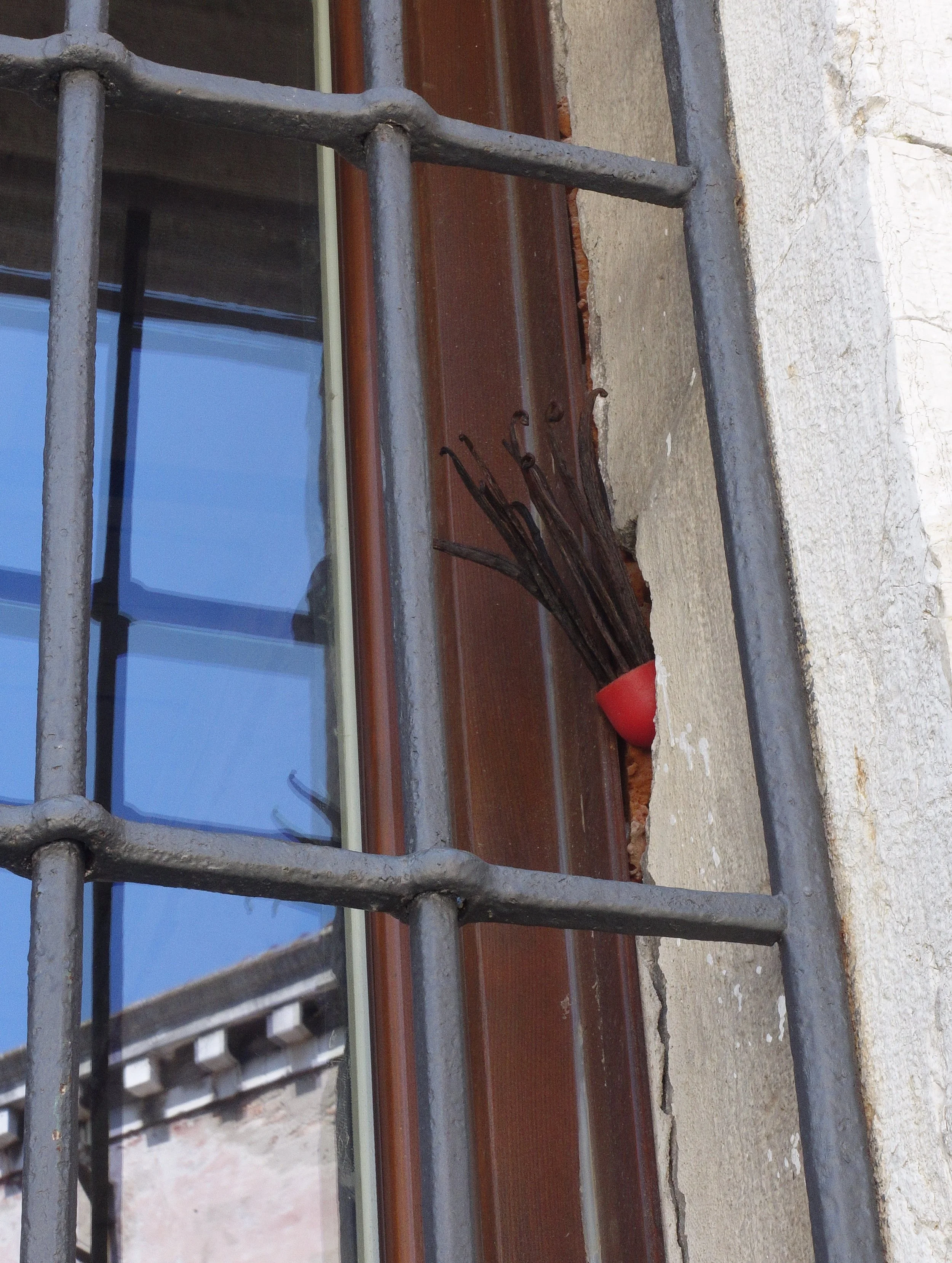 On the edges of the sculpture stand two radio antennas which play local radio traffic, conveying the public domain of airspace. The antennas sprawl straight up to laundry lines atop an actual three-story building in front of “Playcourt.” When Tse realized local Venetians still lived in the building, she wanted to draw attention to them. She also created a badminton birdie made of pieces of vanilla topped with a rubber cap. This choice of material is an homage to how her family worked in vanilla plantations and rubber factories before she was born.