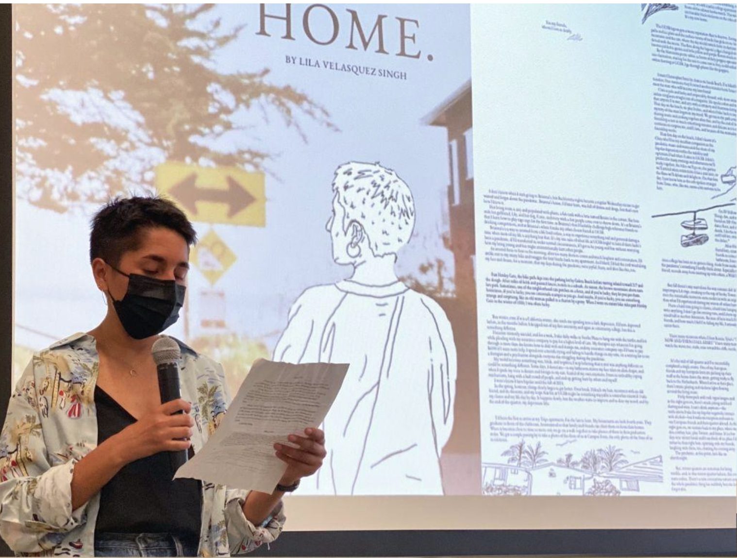 Lila Velasquez Singh, a fourth-year Writing and Literature major in the College of Creative Studies, showed her illustrated essay on the early days of the pandemic titled At Home. “As I speak, I wonder if all my time at UCSB has been this: collapsing, failing, struggling to thrive. I wonder if I should blame myself. I wonder if there's more I could be doing to make it not the case. I wonder if I can blame anything on the pandemic. ‘Maybe,’ my housemate says. ‘Or maybe not.’”