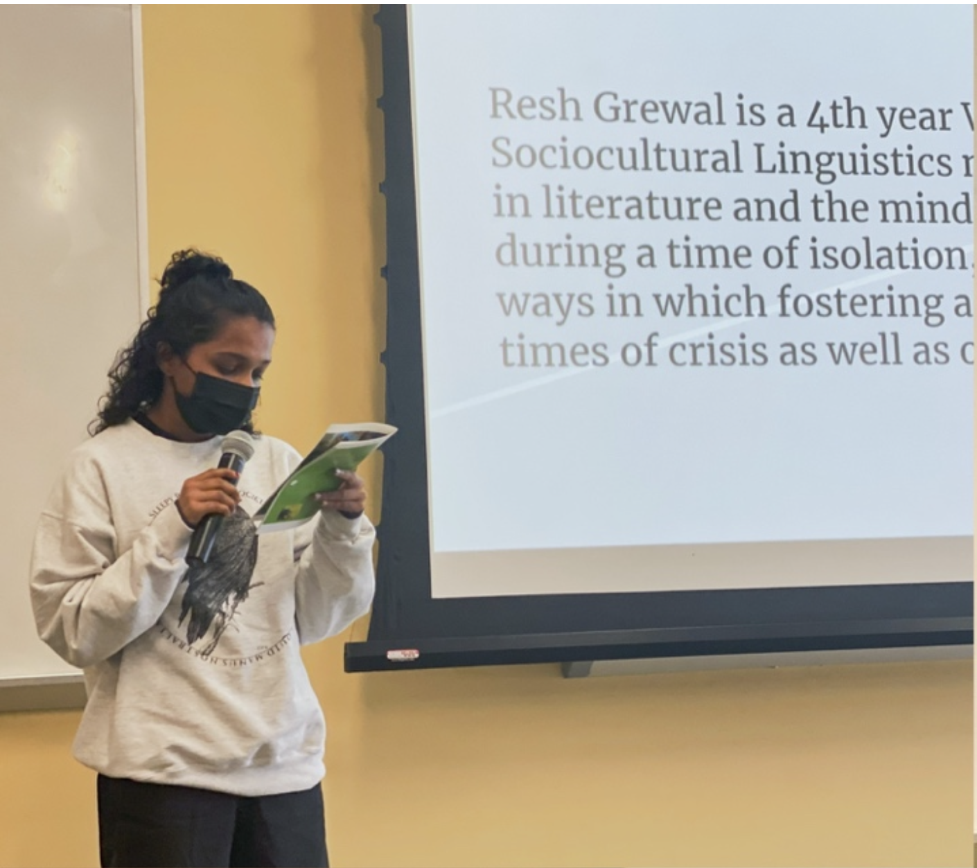 Veronica Vo, one of several student presenters who are minoring in Professional Writing, read an excerpt about a visit to her grandparents, called To Miss, To Remember. She explored her family's grief and happy memories and reflected on her identity. “I can’t even talk to my grandparents… but I wanted too much. Grief is a stranger to me,” she said.
