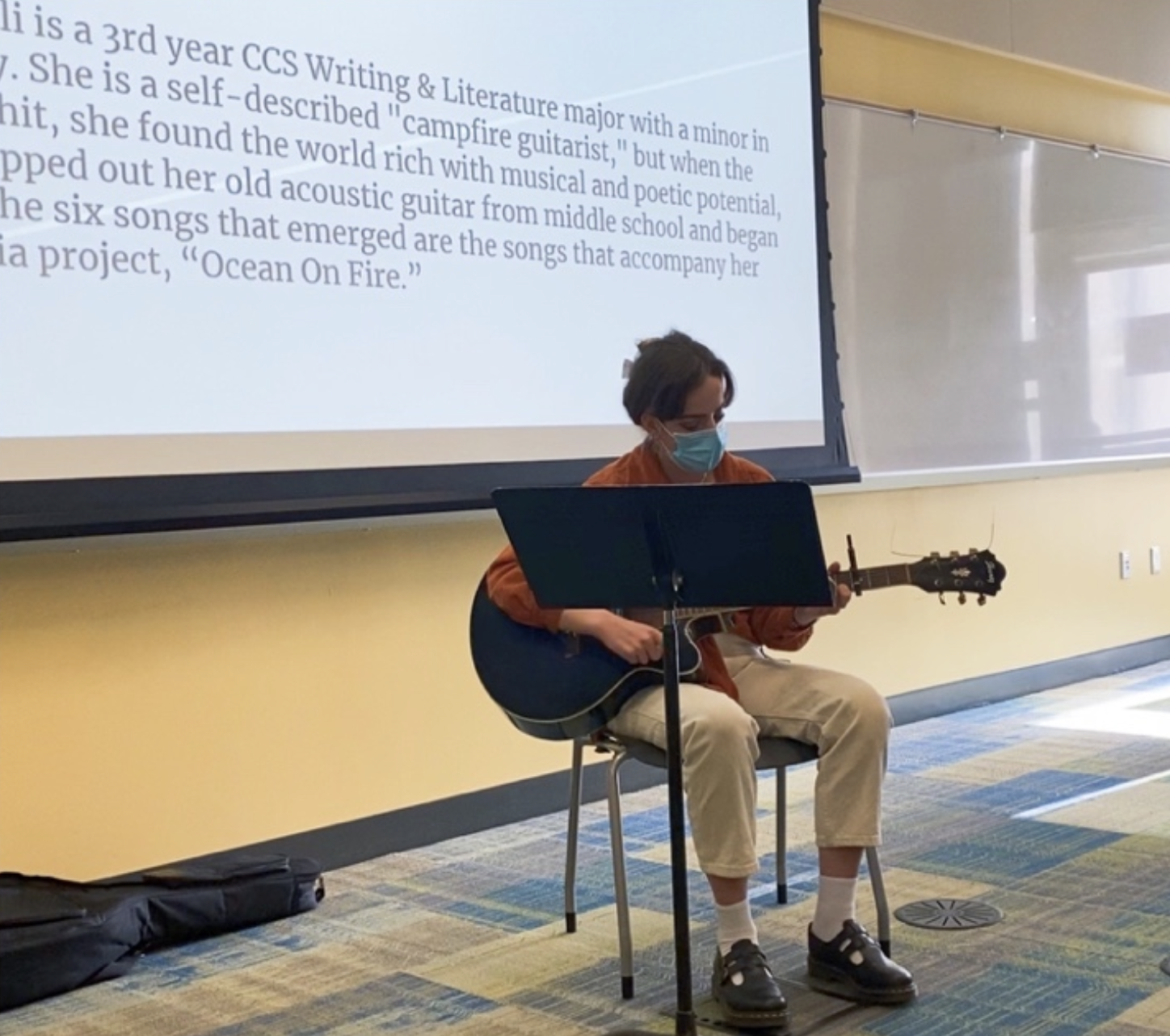 Sierra Vakili, a self-described “campfire guitarist” ended the event by performing a song she wrote as part of her project Ocean on Fire. “The project is a retelling of my love life during the pandemic. It includes six songs that I wrote throughout the pandemic about my love life and what was happening, including some mental breakdowns, tired moments, the moments of heartbreaking, and the moments of happiness which is the song I sang for everyone today,” Vakili said. “It’s called ‘Happy One’. This is my happy one, my happy song. That’s why it’s called that.”