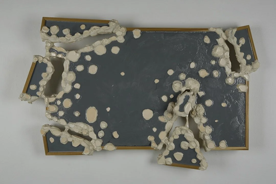 Santa-Barbara-based Artist Matt Mitros’ piece titled, “Side Growth,” made of resin and plaster. Mitros addressed UCSB Art students. [/caption]